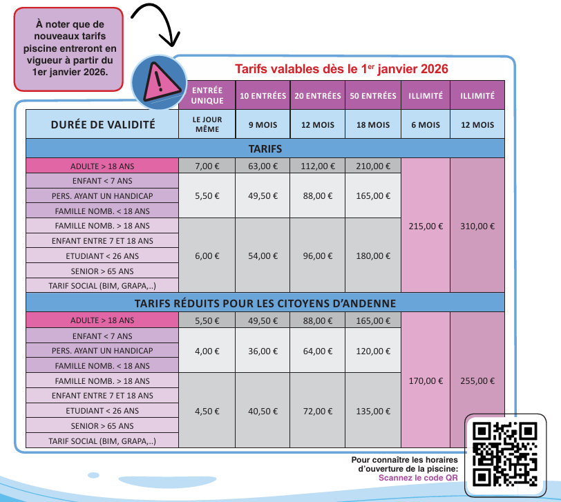 Les détails de l'abonnement incluant le nombre d'entrées ainsi que le rechargement peuvent être consultés via notre webshop.